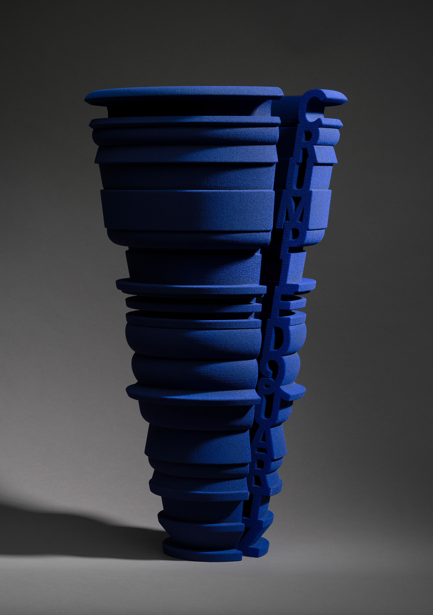 Crumpled Quartz. 3d printed Sand Coated blue.